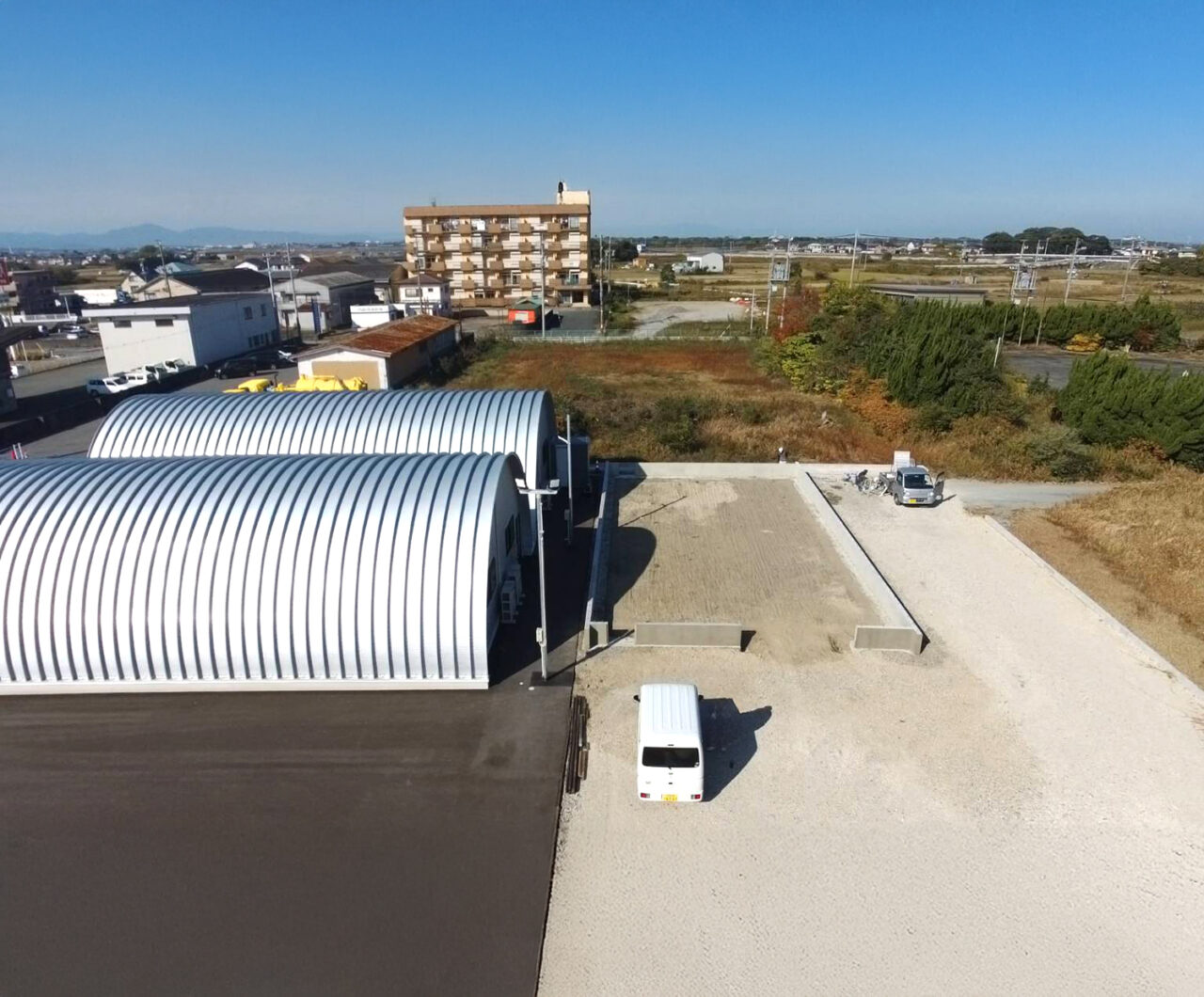 三重県伊勢市馬瀬町にて、3棟目となるスチールアーチ倉庫の建設がスタートしました。