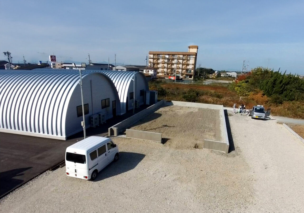 スチールアーチ倉庫の基礎工事が順調|伊勢市で大型10m×20mが始動